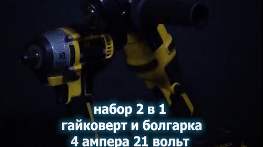 8.набор 2 в 1 желт гайковерт бесщеточный и болгарка 4 ампера 21 вольт