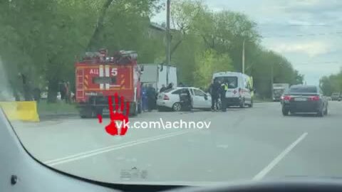 Машина разбита! На месте работают врачи скорой помощи и спасатели