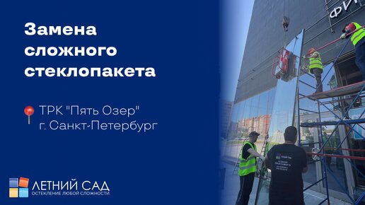 Замена сложного стеклопакета в ТРК "Пять Озер"!