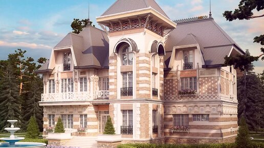 Проект дома в стиле Прованс 💎 Общая площадь 440 м² ❤️ Двухэтажный загородный дом с мансардой и балконом