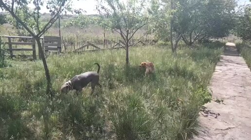 Собаки радостно бегают по своим владениям