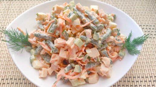 Салат с копченой куриной грудкой и корейской морковью. Салат с курицей который понравится всем гостям!