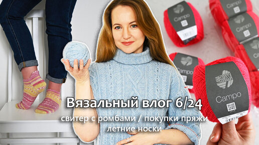 СВИТЕР С РОМБАМИ / СУМКА ИЗ РАФИИ / ПОКУПКИ ПРЯЖИ / Vlog 6/24