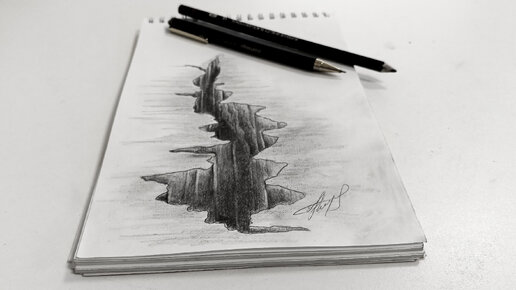 3D разлом картинка карандашами на бумаге.