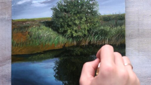 ЖИВОПИСЬ МАСЛОМ - отражение дерева в воде l картина маслом
