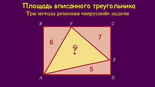 Площадь треугольника, вписанного в прямоугольник. Три метода решения «вирусной» задачи.