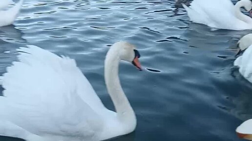 Изборские лебеди-шипуны выясняют отношения на Городищенском озере. Изборск, Псковская область, Словенские ключи