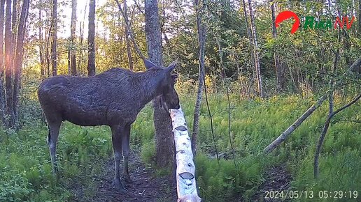 Лось на солонце в лесу!