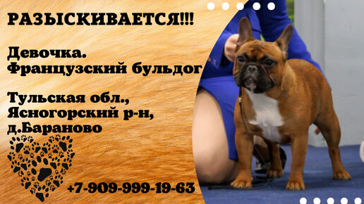 Пропала собака! Девочка. Французский бульдог. Тульская область, Ясногорский район, д.Бараново.