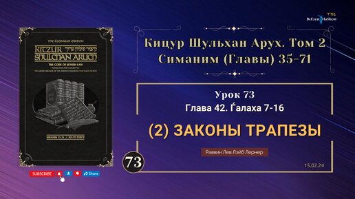 𝟳𝟯. (2) Законы трапезы | Кицур Шульхан Арух 42. Ѓалаха 7-16 | Рабби Лев Лэйб Лернер