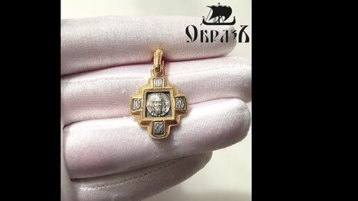 Крест с образом Спас Нерукотворный, серебро 925 проба с золочением (арт. 17.009)