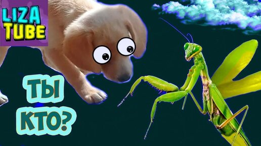 Реакция собаки и кота на богомола, кот Коржик в шоке. Лиза и питомцы