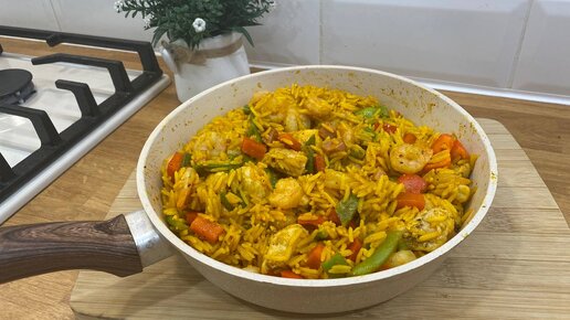 Простая паэлья. Ужин на одной сковороде! Один из вариантов приготовления.