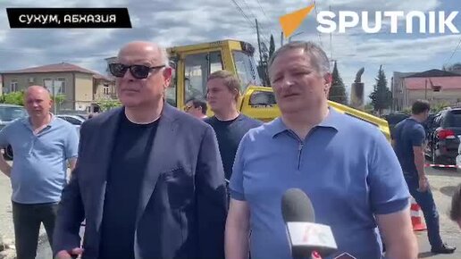 Аслан Бжания и Беслан Эшба инспектируют ремонтно-восстановительные работы на улице Ардзинба.