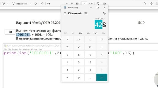 Задачи №10 из пробников ОГЭ по информатике (системы счисления). Задание на подсчет арифметического выражения в разных СС. Проверяем Python