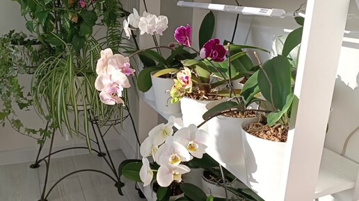 ЦВЕТУЩИЕ ОРХИДЕИ НА БЕЛОМ СТЕЛЛАЖЕ 🌷☀🦋 ГЛОБАЛЬНАЯ перестановка ОРХИДЕЙ😍🥰🤩 МОЯ МЕЧТА сбылась🥳