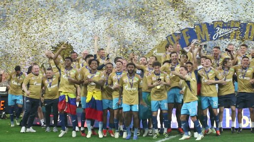 Радость футболистов "Зенита" после вручения Кубка Чемпионов России по футболу