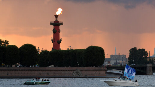 В честь победы «Зенита» в Петербурге зажгли факелы Ростральных колонн