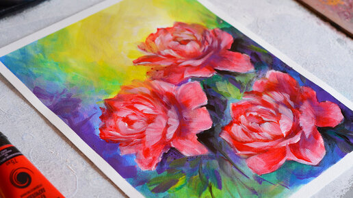 Очень яркая картина с пионами. Акрил.