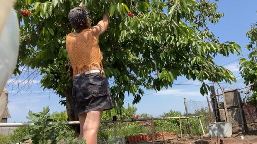 Собираю черешню. Тля.🤷♀️ Ветер задрлбал. У друзей.
