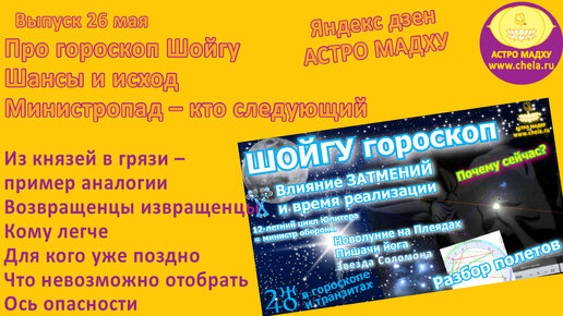 Про гороскоп Шойгу / Министропад – кто следующий / Шансы и возможный исход / Кому легче / Пример аналогии / Ось опасности в гороскопе