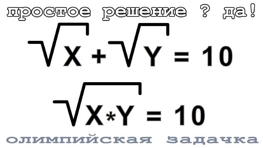 Олимпийская задачка по Математике корень Х плюс корень У = 10. Can you solve this? решить смогут 2% студентов.