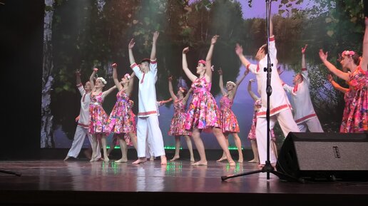 Мощная композиция "Душа наполнена Россией". На сцене студенты Курского колледжа культуры.