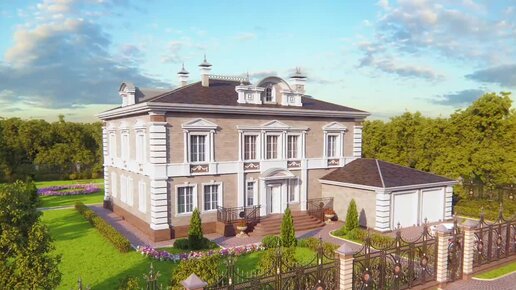 Проект коттеджа с гаражом на 2 авто 👍 Общая площадь 470 м² ❇️ Двухэтажный загородный дом в классическом стиле