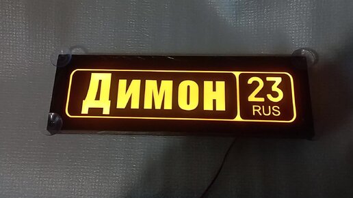 Светящаяся табличка Димон 23 RUS на 12в. 38*12см