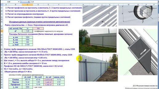 Расчет забора из профлиста. Пульсация ветра по СП 20. Расчеты на прочность, жесткость, СП 16, СП 20.