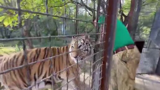 🐯"Кошка, а купаться любит": директор парка "Тайган" купает тигра