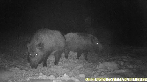 ДИКИЕ КАБАНЫ НА КОРМУШКЕ ФОТОЛОВУШКА ЖИВОТНЫЕ