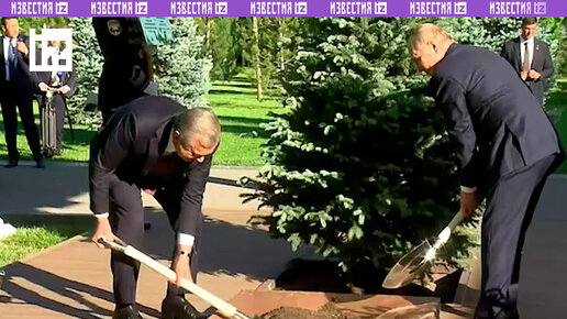 Путин и Мирзиёев посадили хвойную ель на Аллее почетных гостей Узбекистана