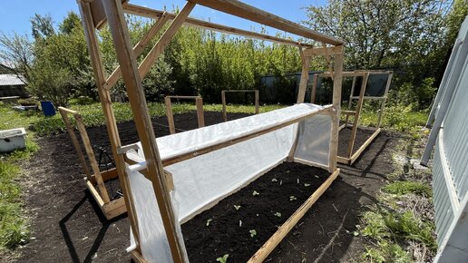 Посадка огурчиков в многофункциональный огуречник, который убережёт от жары и согреет в холод.