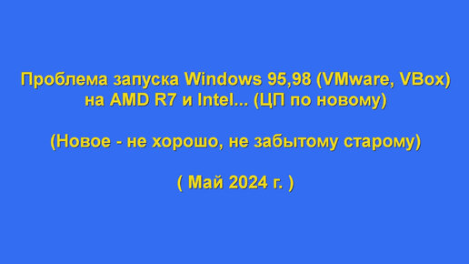 Проблема с запуском Windows 95,98 (VMware, VBox) на Ryzen и Intel (ЦП 12-го поколения)