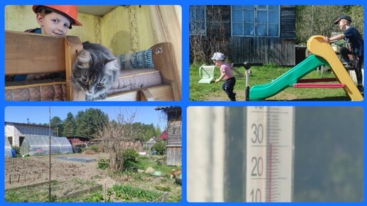 Работы на даче. Жара, а мы болеем. Наполнила и засадила грядку. Детям на даче раздолье.
