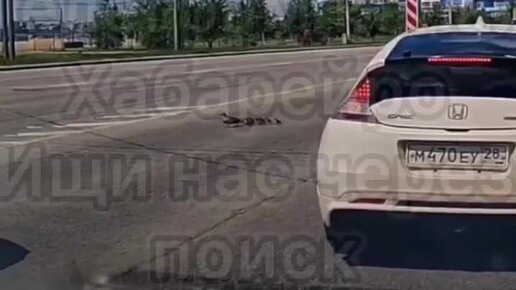 Утиная семья остановила движение на оживленной трассе в Хабаровске | Что-то на дальневосточном