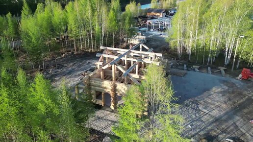 Видеообзор сруба большого дома из кедра с гаражом на участке заказчика