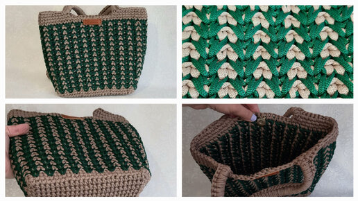 Красивая вязаная сумочка из полиэфирного шнура. Простой узор. Пошаговый мастер-класс
