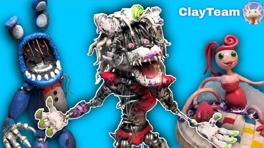 🔥ОЛД БОННИ, ПОЛОМАННАЯ РОКСИ и ДЛИННОНОГАЯ МАМОЧКА из пластилина #fnafsecuritybreach #poppyplaytime