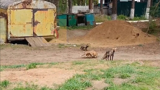 Семья лис поселилась рядом с жилыми домами в Саянске
