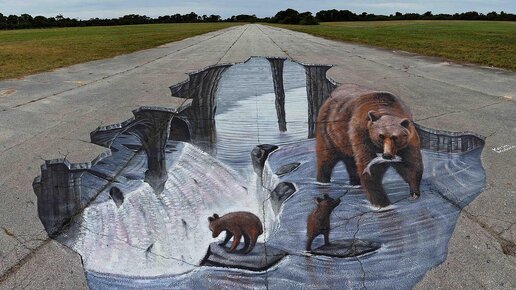 Рисунки мелками на асфальте в 3D. Оптическая иллюзия.