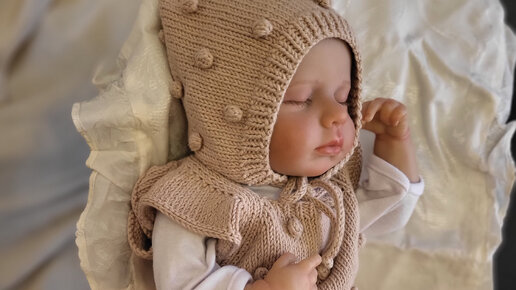 Видеообзор готовой работы. Комплект с шишечками - боди, шапочка и гольфы.