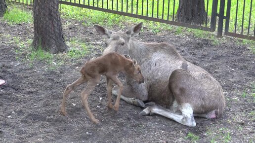 Сегодня в зоопарке родился новый житель, он уже встает на ноги и может ходить. 29.05.2024