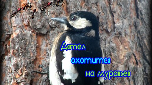 Дятел охотится на муравьев