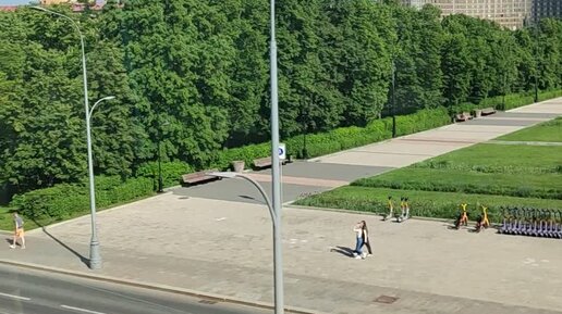Весенняя Москва из окошка моего любимого монорельсового поезда. Гостиница "Космос", монумент "Рабочий и колхозница"(необычный ракурс).