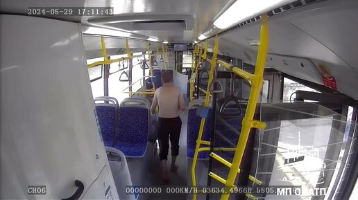 Полуобнаженный мужчина в неадекватном состоянии заскочил в закрывающиеся двери пустого автобуса.