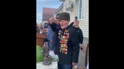 100-летний ветеран приехал к Путину на вручение Звезды Героя. Его бодрости позавидовать - ходит на футбол и на парады, танцует лезгинку.