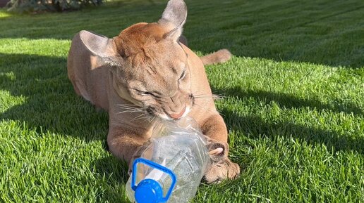 Как выманить пуму из дома? Любимая игрушка Месси это бутылка и желательно побольше😁