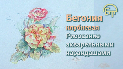 Бегония клубневая. Рисование акварельными карандашами